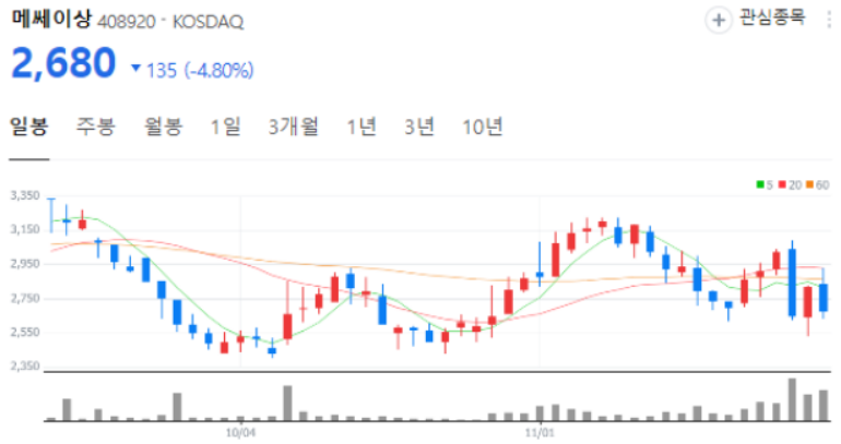 마지막으로 소개하는 부산엑스포 관련주는 메쎄이상이라고 하는 기업입니다