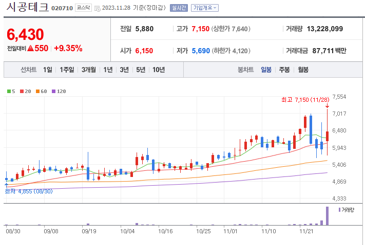 최근 거래량이 늘고 주가가 5,500원 대에서 약 7,000원 가까이 올랐지만 최근 며칠사이 변동폭이 크게 나타났었습니다