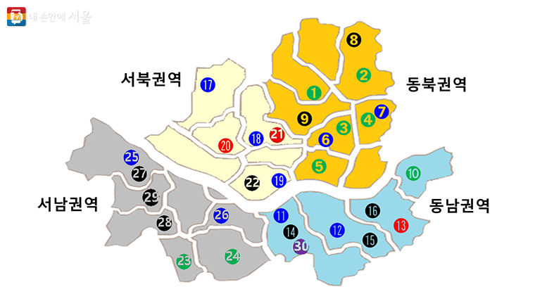 | 구분 | 동북권역 | 동남권역 | 서북권역 | 서남권역 |