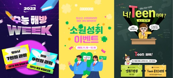 | CGV 수능해방 | 메가박스 소원성치 | 롯데 시네마 너!Teen이야? |