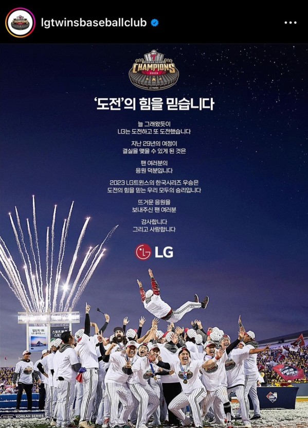 이번 우승으로 LG전자에서는 엘지우승 축하 인증 이벤트를 진행합니다