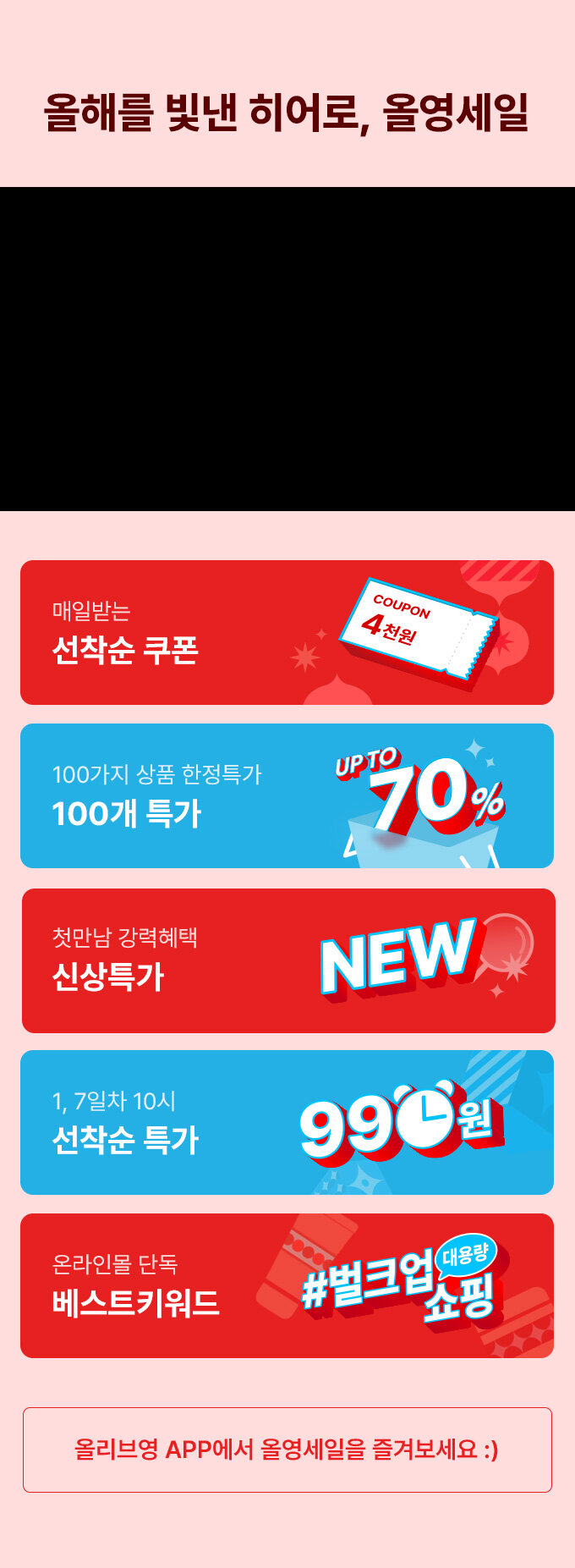 APP과 매장에서 만나볼 수 있는 100가지 특가상품코너에서는 단 7일간 최저가에 도전한다고 하니 과연 올리브영이 추천하는 상품은 무엇이 있을지 아래에 남겨놓을 테니 필요한 상품을 최저가에 구매하세요!