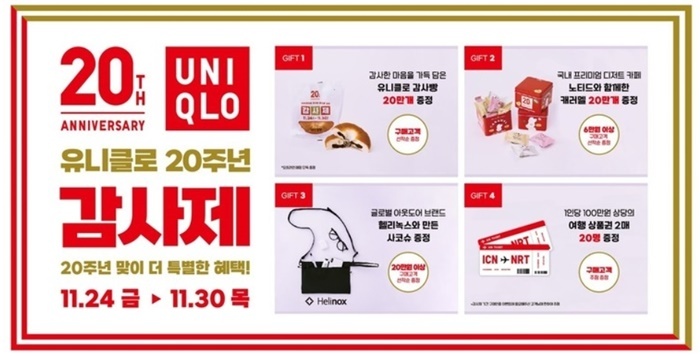 유니클로가 20주년 기념으로 감사제를 실시한 지 3일이 지났습니다